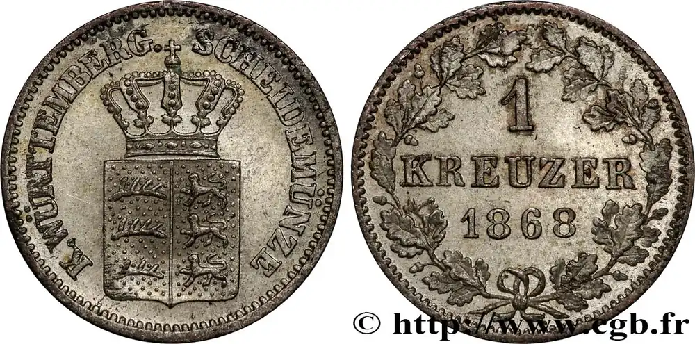 ALLEMAGNE – WURTEMBERG 1 Kreuzer Royaume du Würtemberg 1868 Stuttgart fwo_825625 Monde Satisfait Ou Remboursé