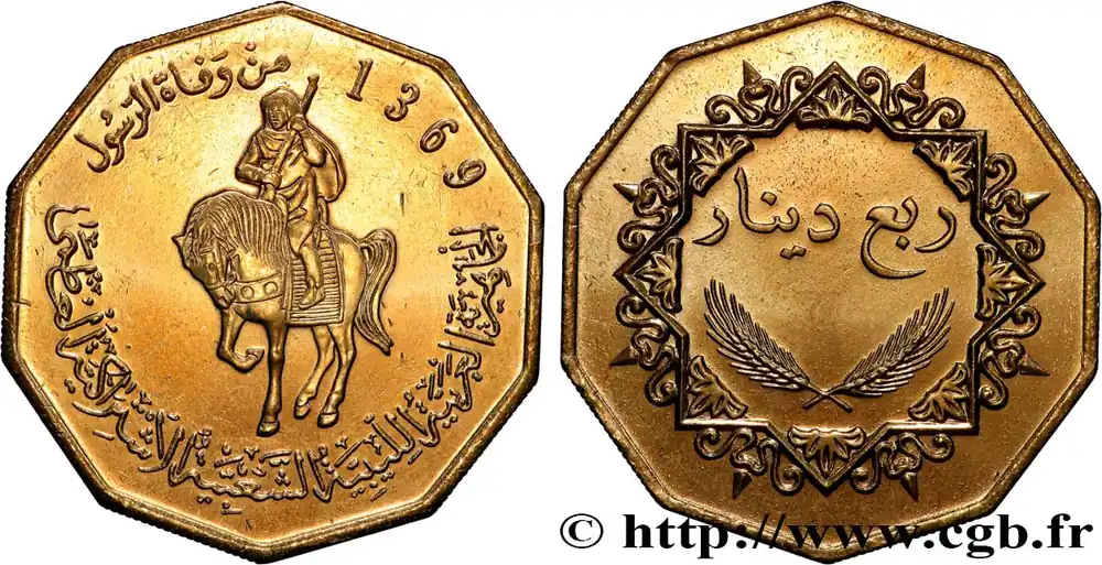 LIBYE 1/4 Dinar cavalier au fusil an 1369 depuis la mort du prophète 2002 fwo_815301 Monde Must-Have