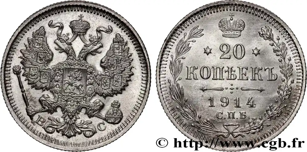 RUSSIE 20 Kopecks aigle bicéphale 1914 Saint-Petersbourg fwo_822126 Monde Pas Cher