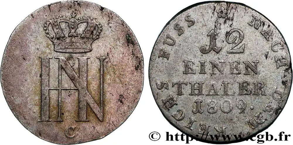ALLEMAGNE – ROYAUME DE WESTPHALIE – JÉRÔME NAPOLÉON 1/12 de thaler 1809 fwo_793645 Monde Commander Vite