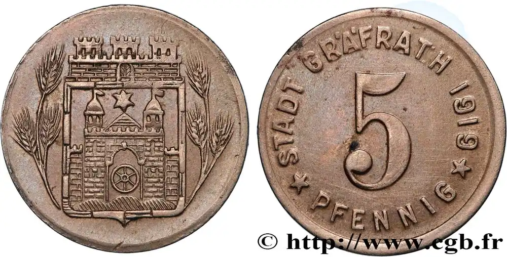 Authentique ALLEMAGNE – Notgeld 5 Pfennig Gräfrath 1919 fwo_822189 Monde