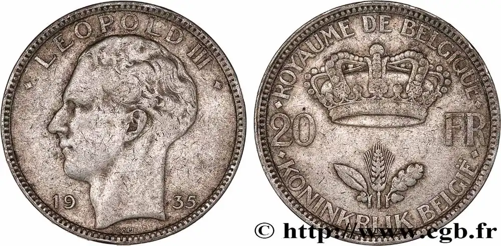 BELGIQUE 20 Francs Léopold III 1935 fwo_776945 Monde Solde
