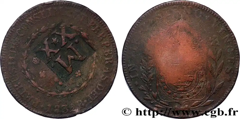 BRÉSIL – EMPIRE DU BRÉSIL – PIERRE II 20 Réis Maranhao contremarqué sur une 80 Réis (1834) fwo_821263 Monde Usine Directe