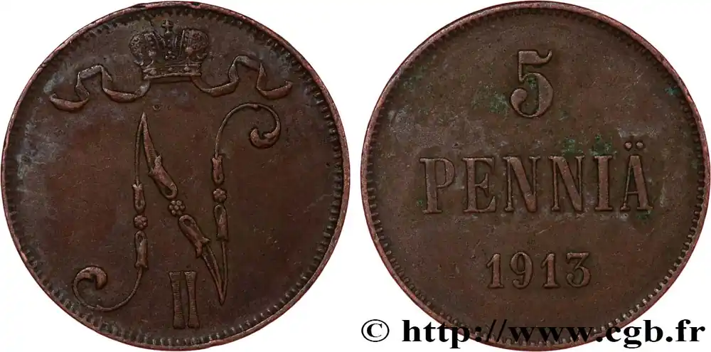 Meilleur Choix FINLANDE 5 Pennia monogramme Tsar Nicolas II 1913 fwo_820350 Monde