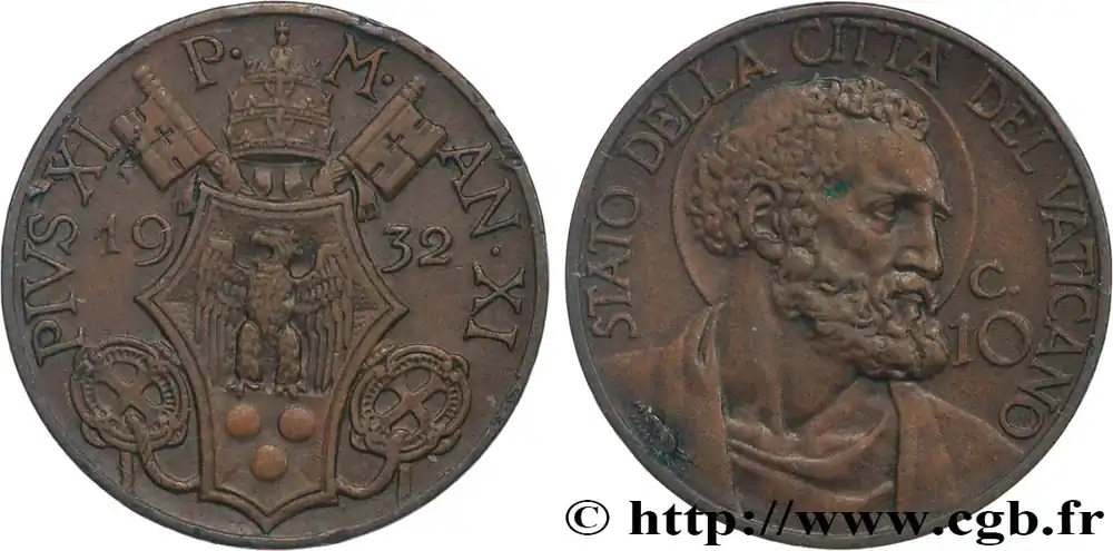 Meilleure Vente VATICAN ET ÉTATS PONTIFICAUX 10 Centesimi frappe au nom de Pie XI an XI 1932 Rome fwo_827241 Monde