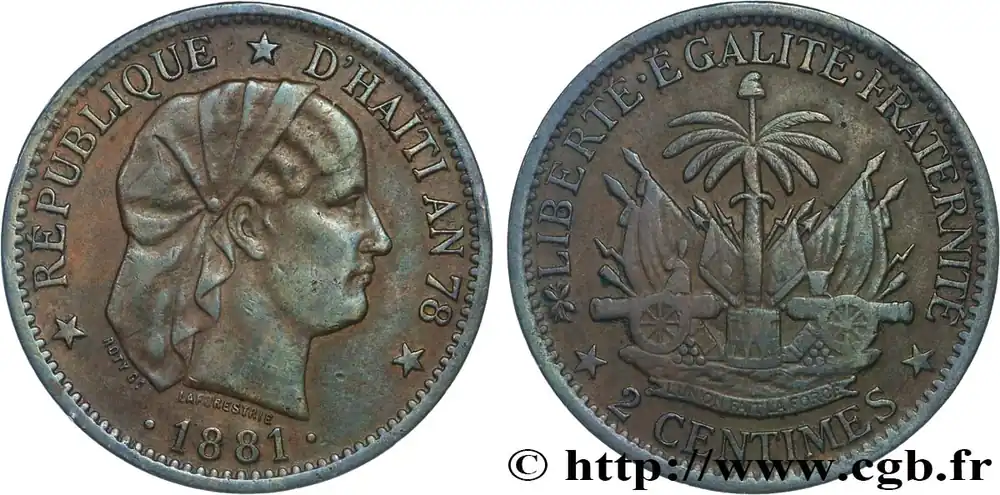 Vente Flash HAÏTI 2 Centimes an 78 emblème “Liberté créole” de Roty 1881 Paris fwo_827450 Monde