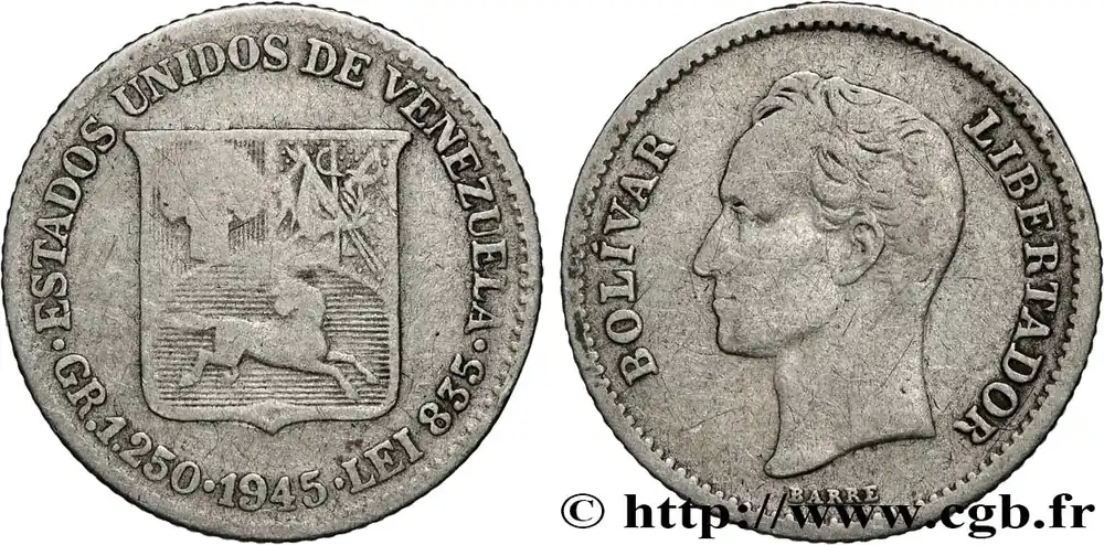 VENEZUELA 1/4 Bolivar 1945 Philadelphie fwo_829974 Monde Prix Bas