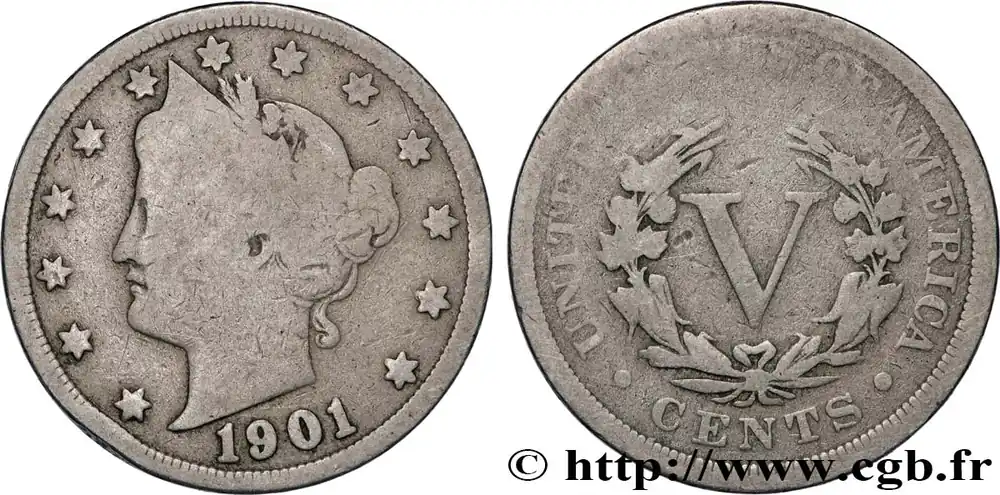 ÉTATS-UNIS D’AMÉRIQUE 5 Cents Liberty 1901 Philadelphie fwo_822124 Monde Top Qualité