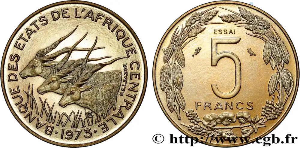 ÉTATS DE L’AFRIQUE CENTRALE Essai de 5 Francs antilopes 1973 Paris fwo_831053 Monde Remise