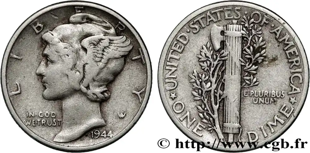 ÉTATS-UNIS D’AMÉRIQUE 1 Dime Mercury 1944 Philadelphie fwo_831433 Monde Top Vente