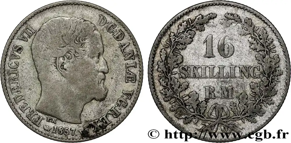 DANEMARK 16 Skilling Rigsmont Frédéric VII 1857 Copenhague fwo_833879 Monde Artisanat