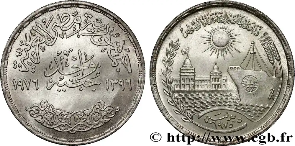 ÉGYPTE 1 Pound (Livre) Réouverture du Canal de Suez AH 1396 1976 fwo_834816 Monde Exclusif