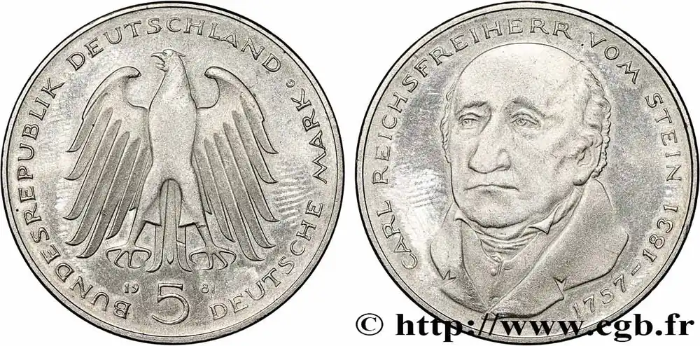 Affaire À Saisir ALLEMAGNE 5 Mark le baron Heinrich Friedrich Karl vom und zum Stein 1981 Karlsruhe fwo_784399 Monde