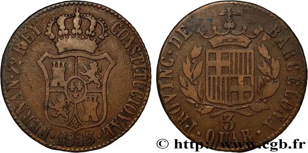 Acheter Direct ESPAGNE – BARCELONE 3 Quartos province de Barcelone 1823 fwo_832760 Monde