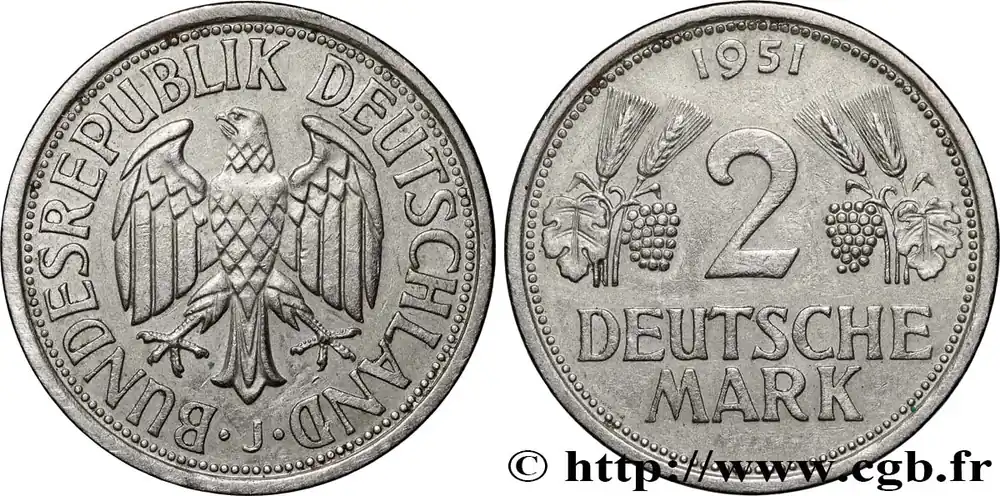 ALLEMAGNE 2 Mark aigle 1951 Hambourg – J fwo_840272 Monde Livraison Mondiale