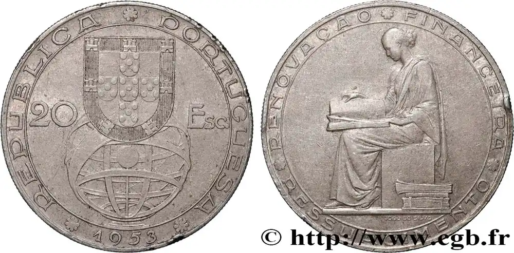 Acheter En Ligne PORTUGAL 20 Escudos 25e anniversaire de la réforme financière 1953 fwo_840326 Monde