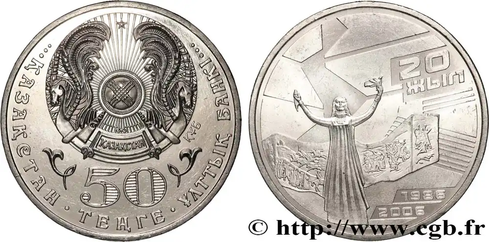 Authentique KAZAKHSTAN 50 Tenge Emblème national / 20e anniversaire des évènement de Jeltoqsan 2006 fwo_816672 Monde