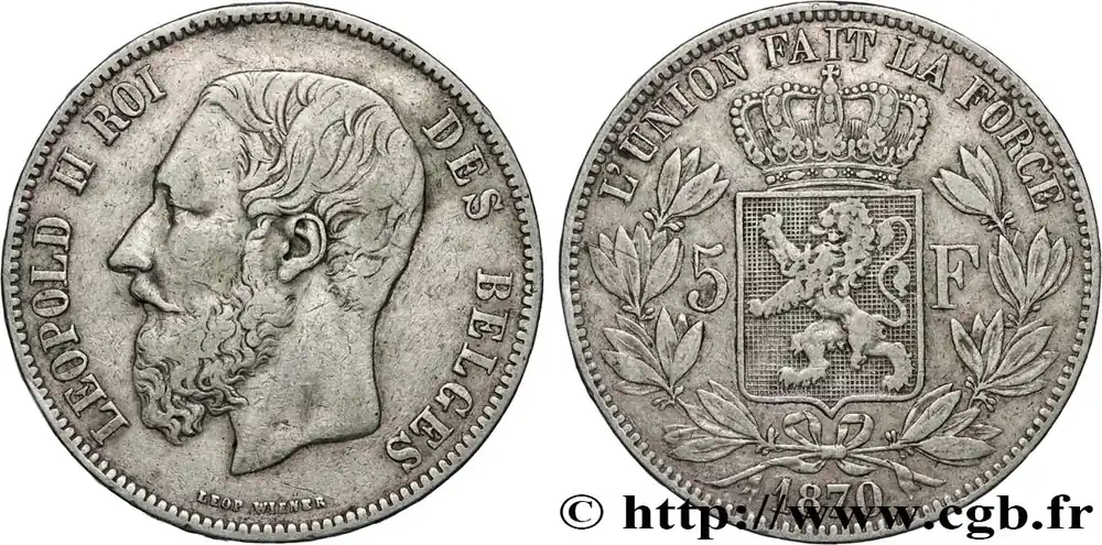 BELGIQUE 5 Francs Léopold II 1870 fwo_827520 Monde Meilleur Prix
