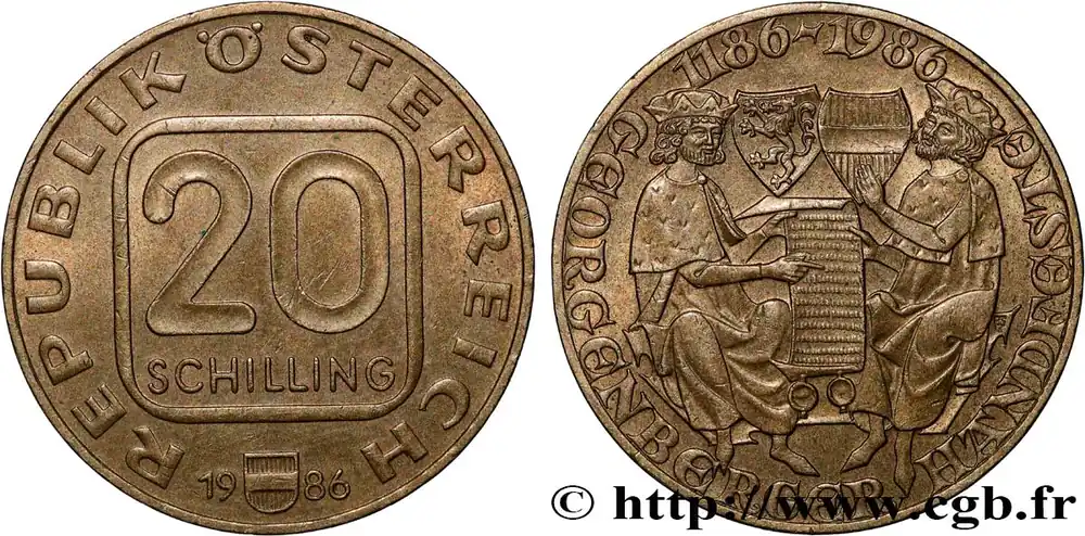 AUTRICHE 20 Schilling 800e anniversaire du Pacte de Georgenberg 1986 Vienne fwo_840260 Monde Bon Marché