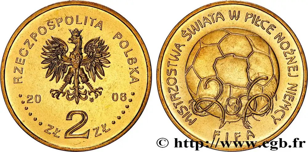 Vente Directe POLOGNE 2 Zlote Coupe du monde de Football FIFA en Allemagne 2006 Varsovie fwo_824676 Monde