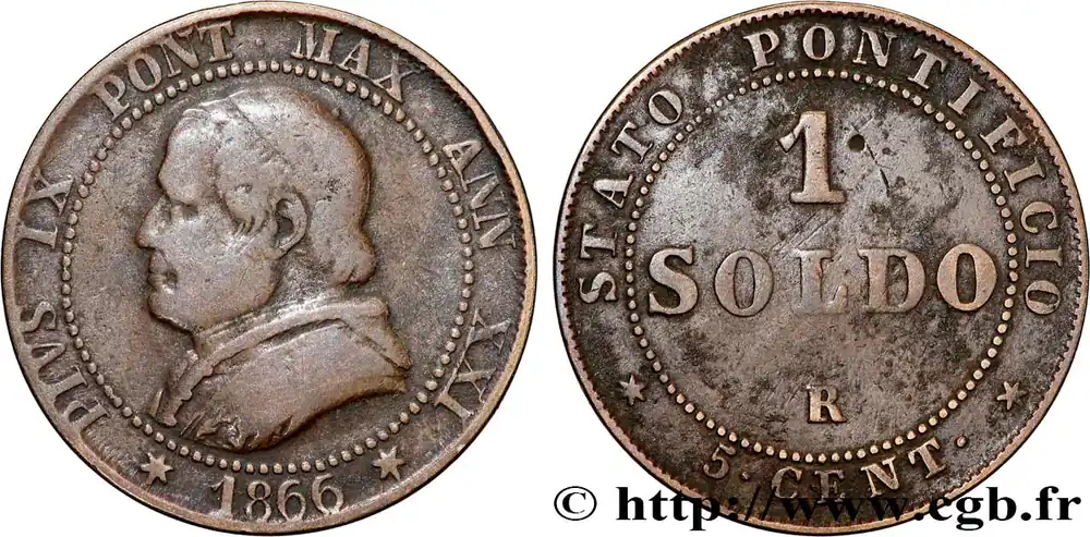 Usine Directe VATICAN ET ÉTATS PONTIFICAUX 1 Soldo (5 centesimi) Pie IX an XXI type gros buste 1866 Rome fwo_834737 Monde