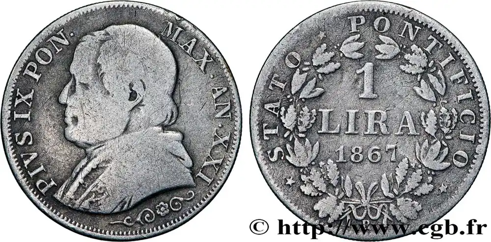 VATICAN ET ÉTATS PONTIFICAUX 1 Lira Pie IX an XXI 1867 Rome fwo_834927 Monde Achetez Aujourd’hui
