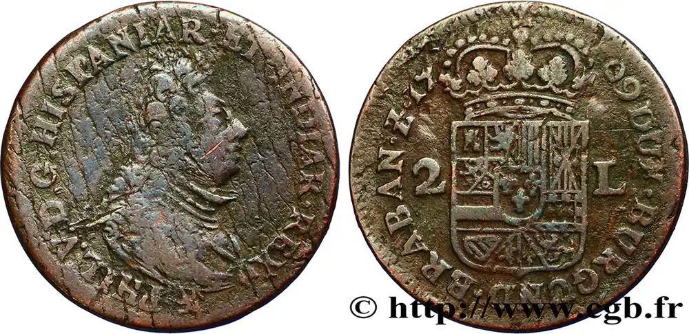 BELGIQUE – NAMUR 2 Liards Philippe V d’Espagne 1709 Namur fwo_383397 Monde Tendance