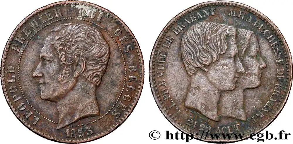 BELGIQUE 10 Centimes Mariage du Duc et de la Duchesse de Brabant 1853 Bruxelles fwo_835119 Monde Seulement Aujourd’hui