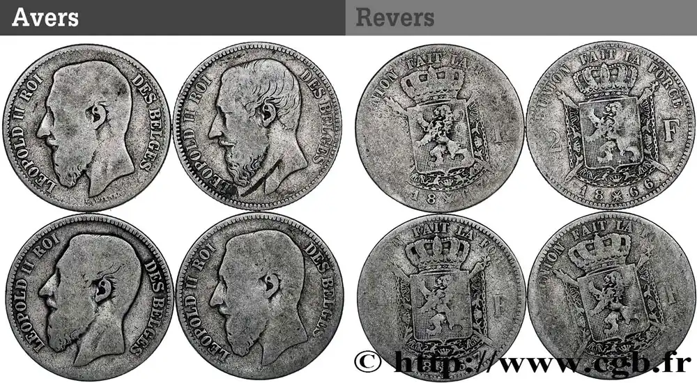 BELGIQUE Lot 4 x 2 Francs Léopold II 1866-1867 fwo_835768 Monde Prix Réduit