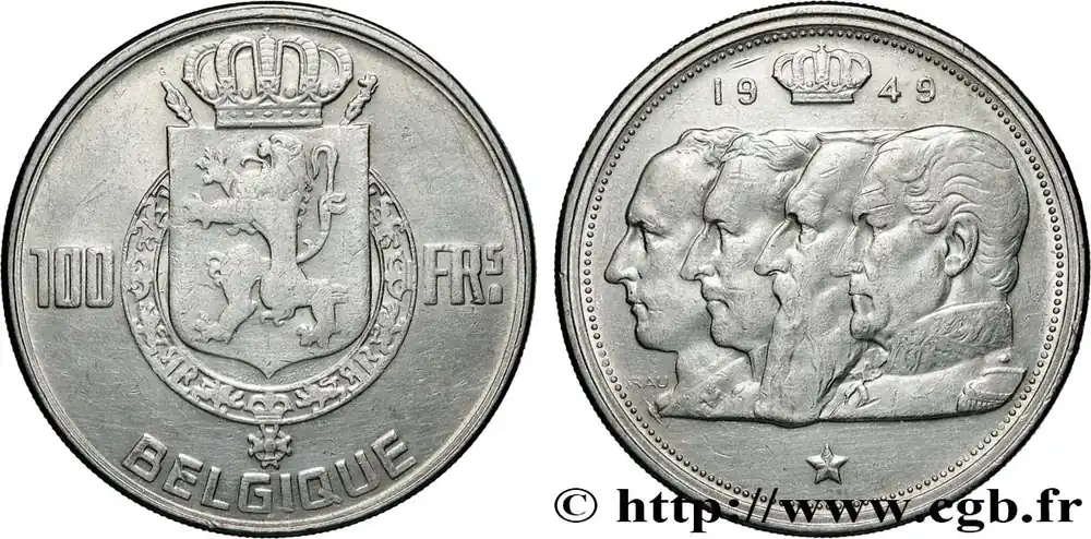 BELGIQUE 100 Francs bustes des quatre rois de Belgique, légende française 1949 fwo_839322 Monde Garantie Incluse