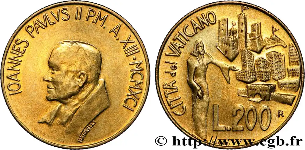 Achat Immédiat VATICAN ET ÉTATS PONTIFICAUX 200 Lire Jean Paul II an XIII 1991 fwo_824751 Monde