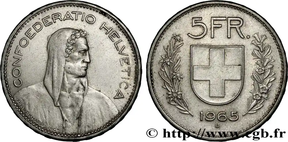 SUISSE 2 Francs Helvetia 1965 Berne fwo_831939 Monde Authentique