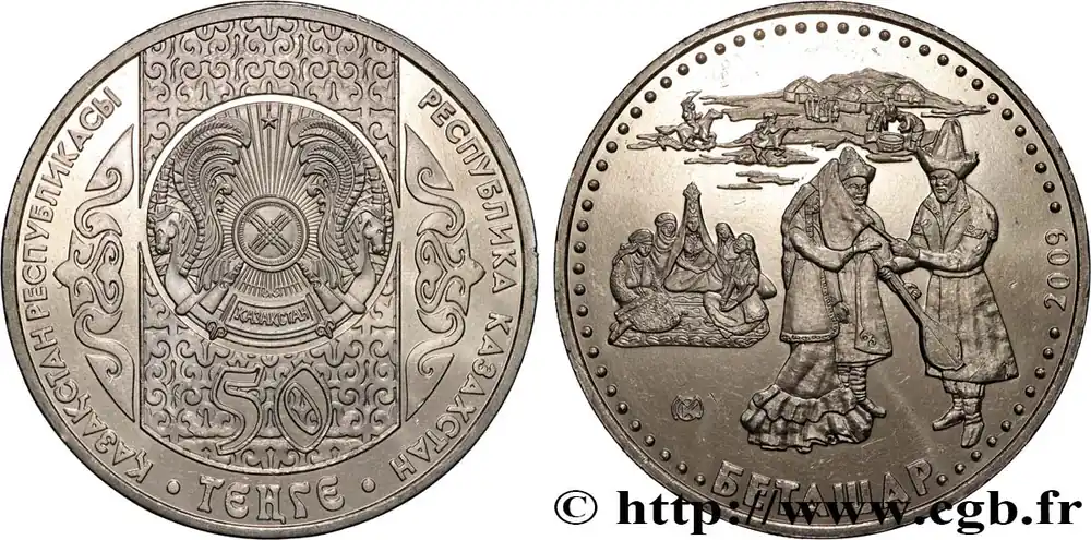 KAZAKHSTAN 50 Tenge Emblème national / cérémonie maritale du Betashar 2009 fwo_824447 Monde Prix Choc