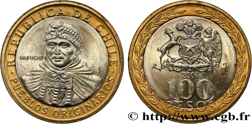 Petit Prix CHILI 100 Pesos indienne mapuche / emblème 2006 Santiago – S° fwo_824577 Monde