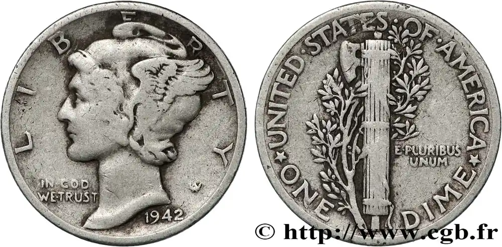 Petit Prix ÉTATS-UNIS D’AMÉRIQUE 1 Dime Mercury 1942 Philadelphie fwo_832772 Monde