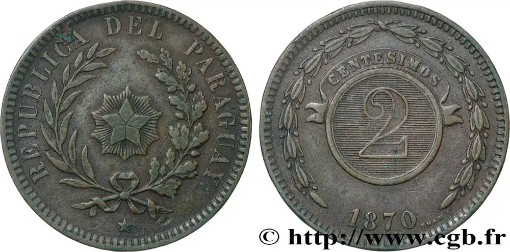 PARAGUAY 2 Centesimos 1870 Birmingham fwo_841433 Monde Fait Main