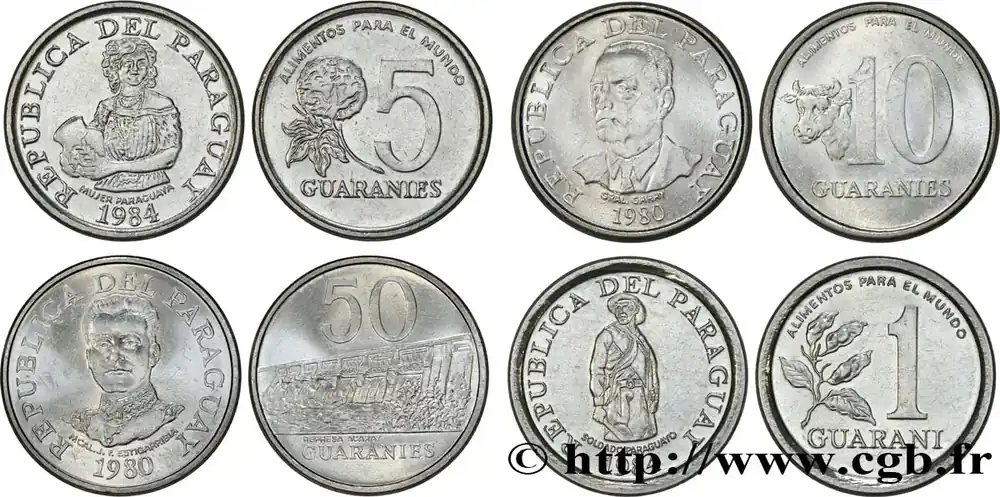 PARAGUAY Lot de 4 monnaies de 1, 5, 10 et 50 Guaranies 1980-1984 fwo_845944 Monde Populaire