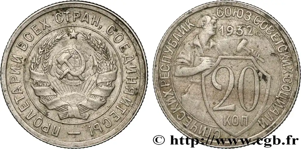 Pas Cher RUSSIE – URSS 20 Kopecks emblème de URSS / ouvrier 1932 fwo_849520 Monde