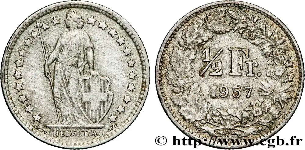 SUISSE 1/2 Franc Helvetia 1957 Berne – B fwo_837570 Monde Populaire