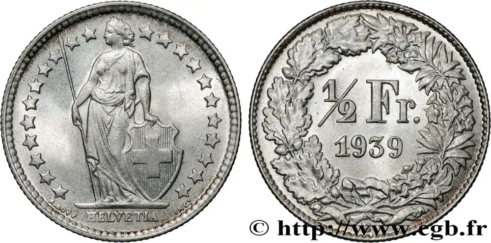 SUISSE 1/2 Franc Helvetia 1939 Berne – B fwo_840717 Monde Commander Vite