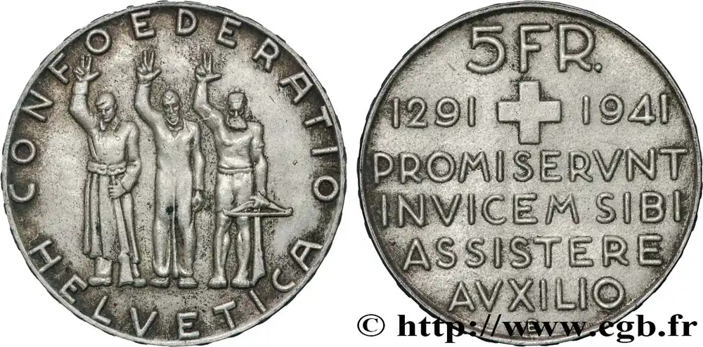 SUISSE 5 Francs 650e anniversaire de la confédération 1941 Berne fwo_840816 Monde Certifié