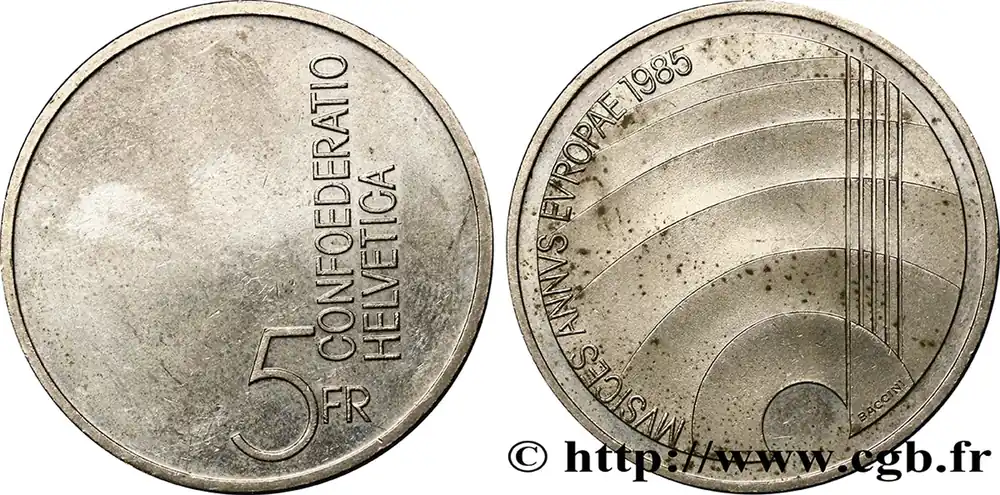 SUISSE 5 Francs année européenne de la musique 1985 Berne fwo_846035 Monde Top Vente