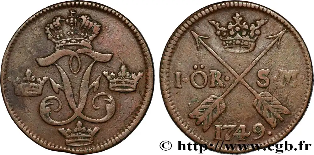 SUÈDE 1 Ore Frédéric Ier 1749 fwo_849013 Monde Commander Maintenant