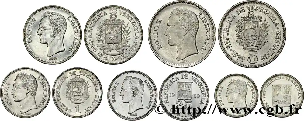 VENEZUELA Lot de 5 monnaies de 25 et 50 Centimos, 1, 2 et 5 Bolivares 1989-1990 schwerte fwo_845948 Monde Dernière Chance