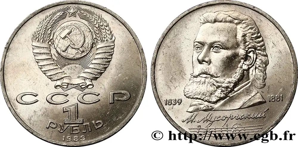 Livraison Gratuite RUSSIE – URSS 1 Rouble 150e anniversaire de la naissance du compositeur Modeste Petrovitch Moussorgski 1989 fwo_846037 Monde