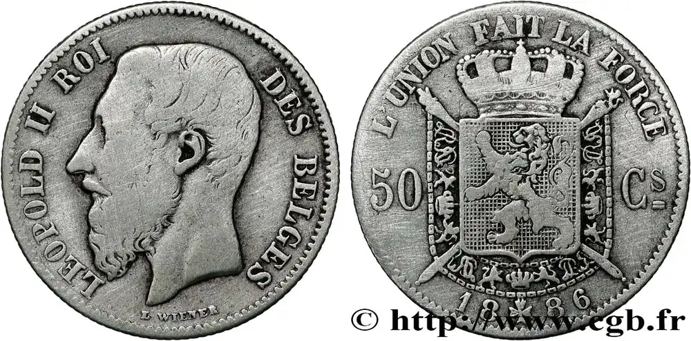 BELGIQUE 50 Centimes Léopold II légende française signature L WIENER 1886 Bruxelles fwo_843083 Monde Offre Exclusive