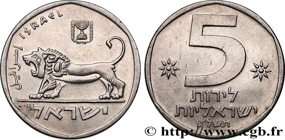 ISRAËL 5 Lirot lion JE5739 1979 fwo_555945 Monde Prix Cassé