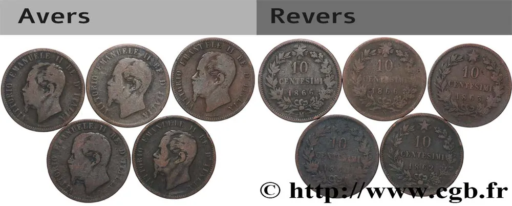 ITALIE Lot 5 x 10 Centesimi Victor Emmanuel II n.d. Atelier Divers fwo_843128 Monde Marque