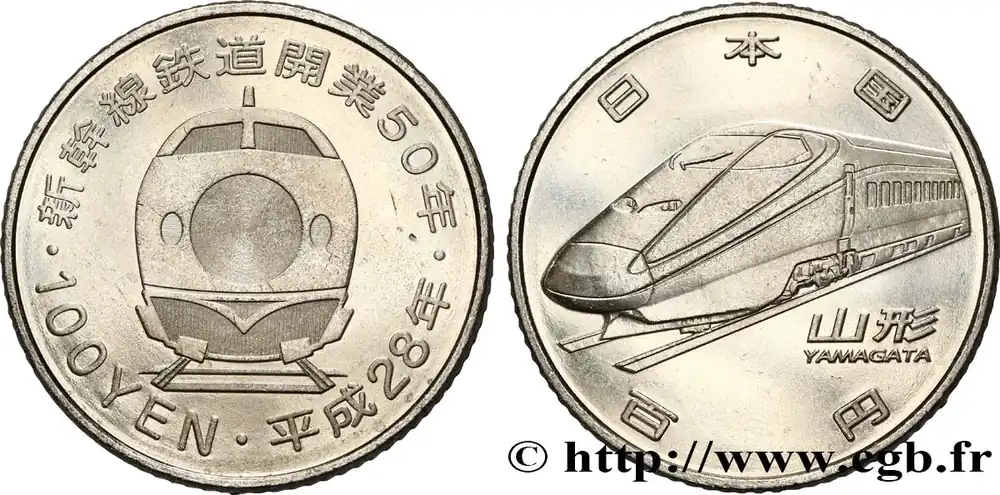 JAPON 100 Yen 50e anniversaire du Shinkansen : Yamagata Shinkansen an 28 2016 fwo_850112 Monde Usine Directe