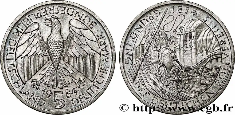 ALLEMAGNE 5 Mark aigle Union douanière allemande 1984 Munich – D fwo_784505 Monde Authentique